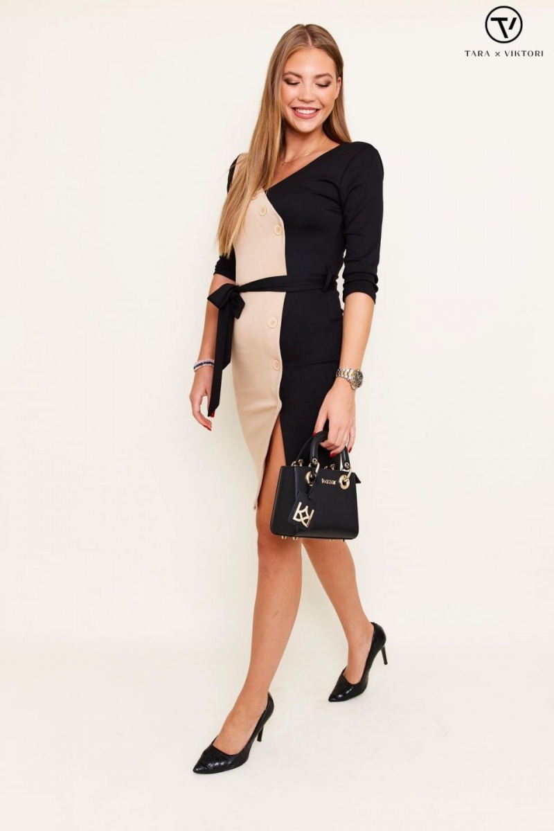 Amaris gombos ruha fekete-bézs